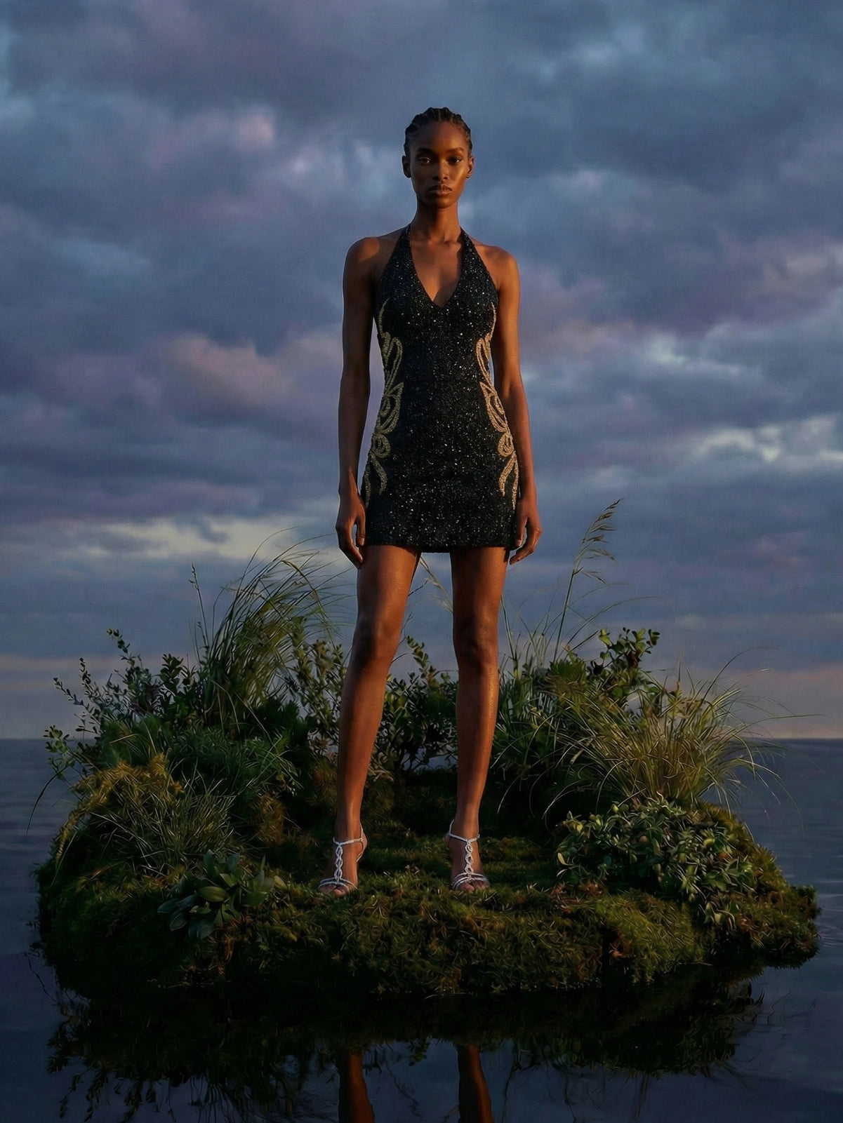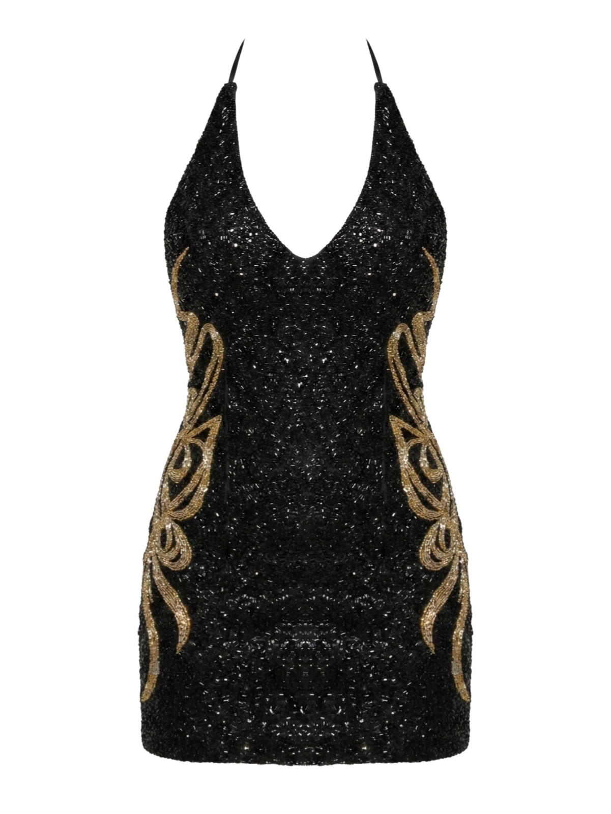 Aurelia Noir Halter Neck Mini Dress The Aurelia Noir showcases a striking halter neckline that commands attention while maintaining refined restraint.