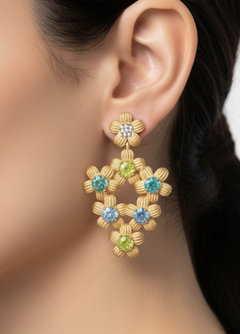 Delicate daisy-shaped stud earrings with subtle crystal accents, evoking morning dew and fresh blooms. Ideal for spring/summer outfits, garden parties, or everyday feminine styling.