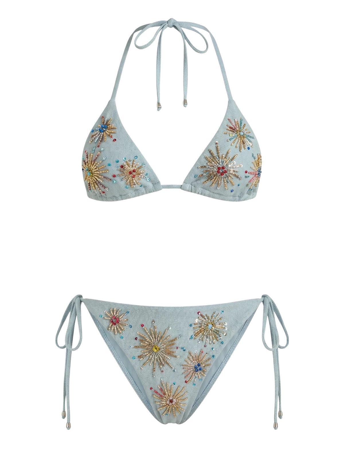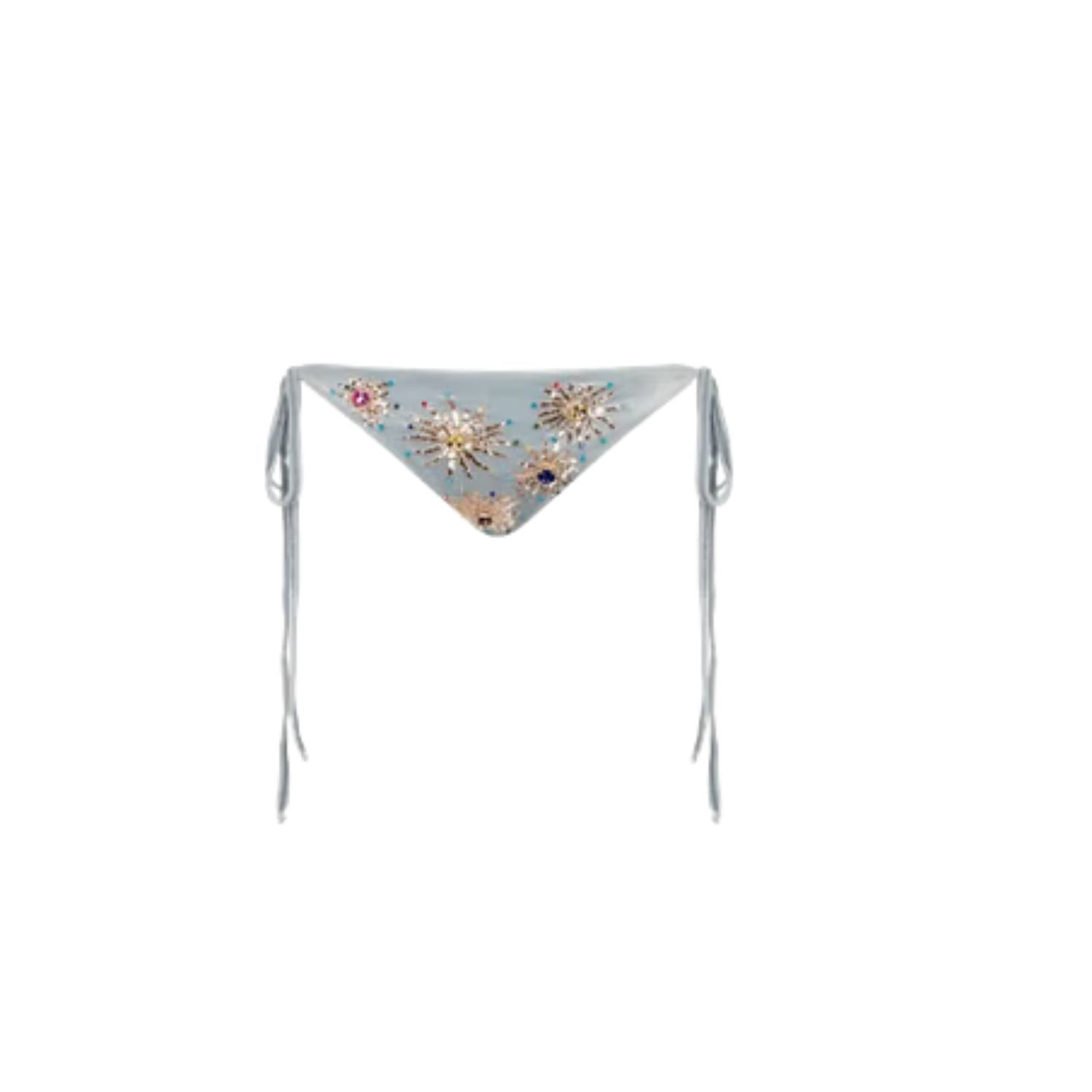 A matching bikini bottom designed with a minimal, flattering silhouette and adjustable tie sides for a personalized fit. Featuring the same delicate hand-embellished detailing, this piece adds a refined, luxurious finish while offering comfort and ease of movement.