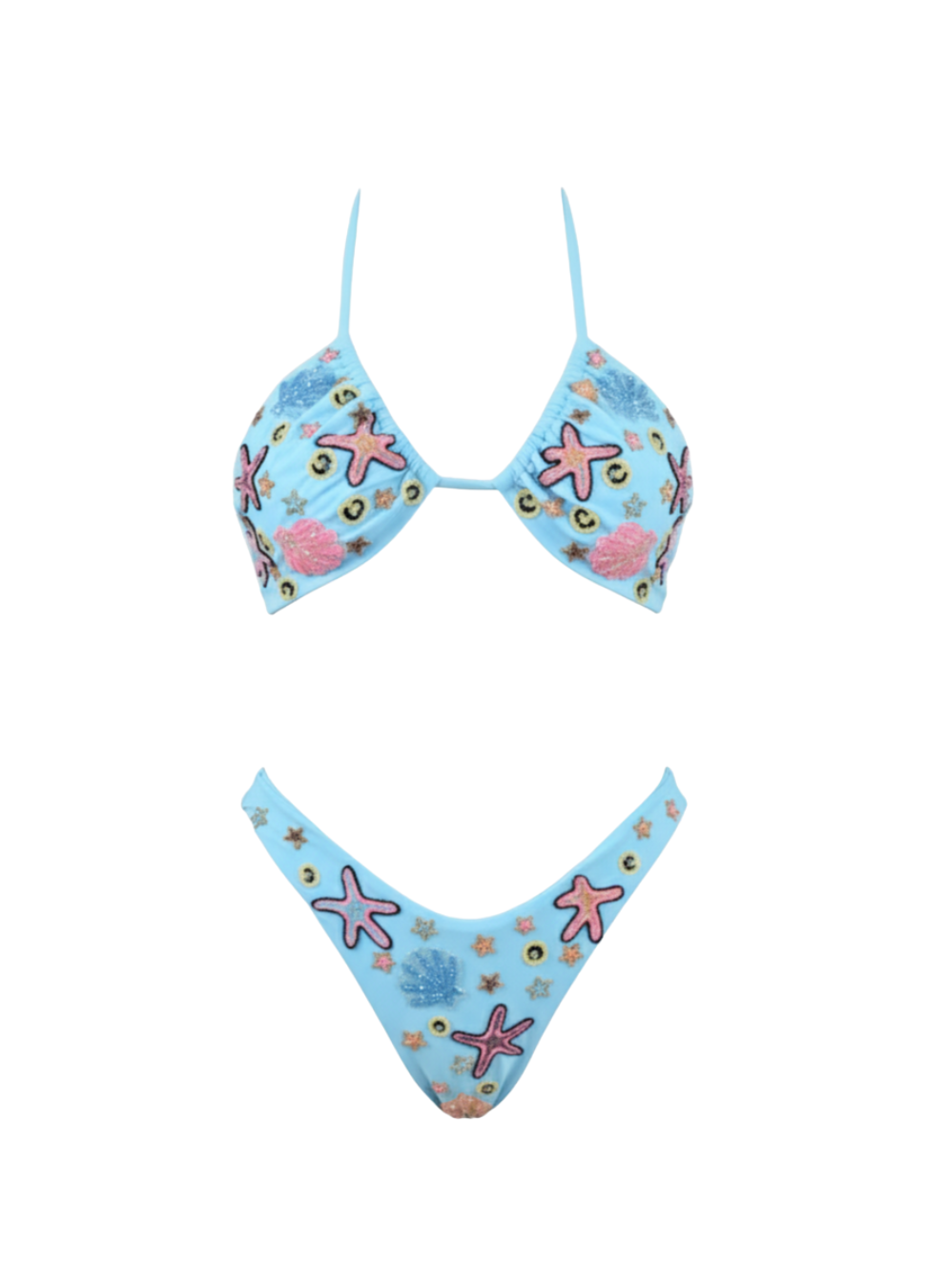 The Quinn Bikini bottoms are constructed with eco-friendly lycra. This bikini is slip on and hand embroidered elements, resembling a tropical nature.