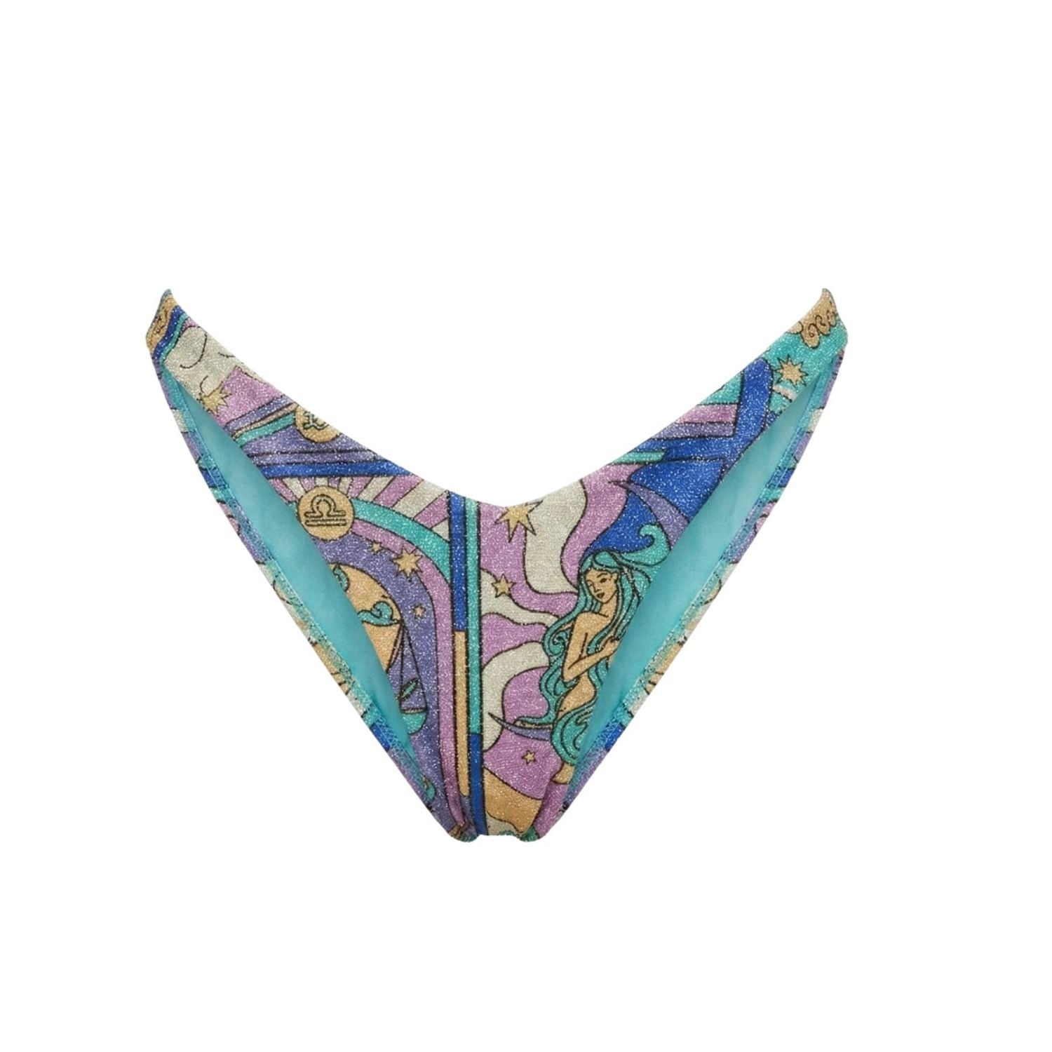 This high-cut bikini bottom is designed to elongate the legs and accentuate the waist. Featuring the same celestial-inspired print, it creates a bold yet playful look with a flattering V-shaped front. The minimal coverage and smooth finish make it ideal for a confident, modern swim silhouette.