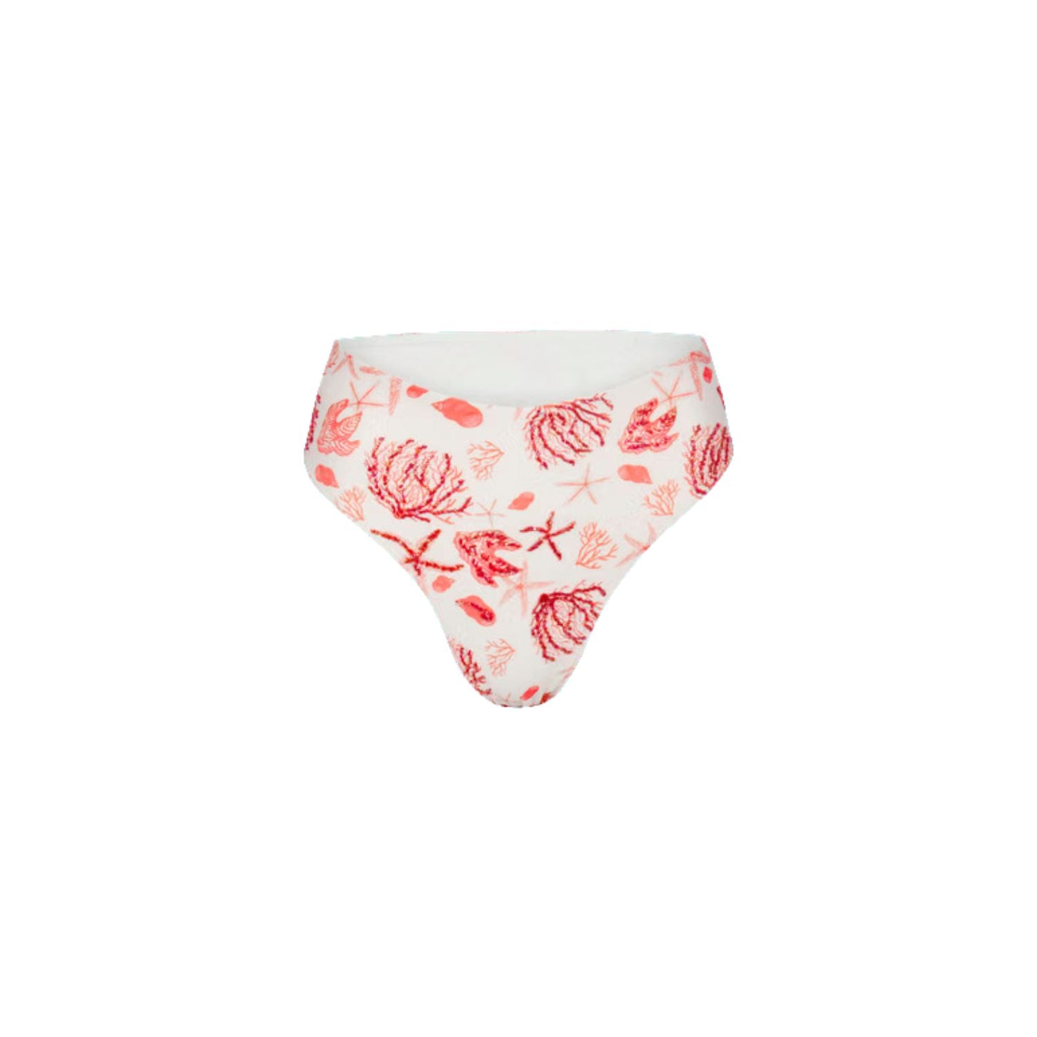 A flattering high-cut bikini bottom designed to elongate the legs while offering comfortable coverage. Featuring a matching coral-inspired print, this piece creates a streamlined silhouette perfect for sunny beach days and poolside lounging.