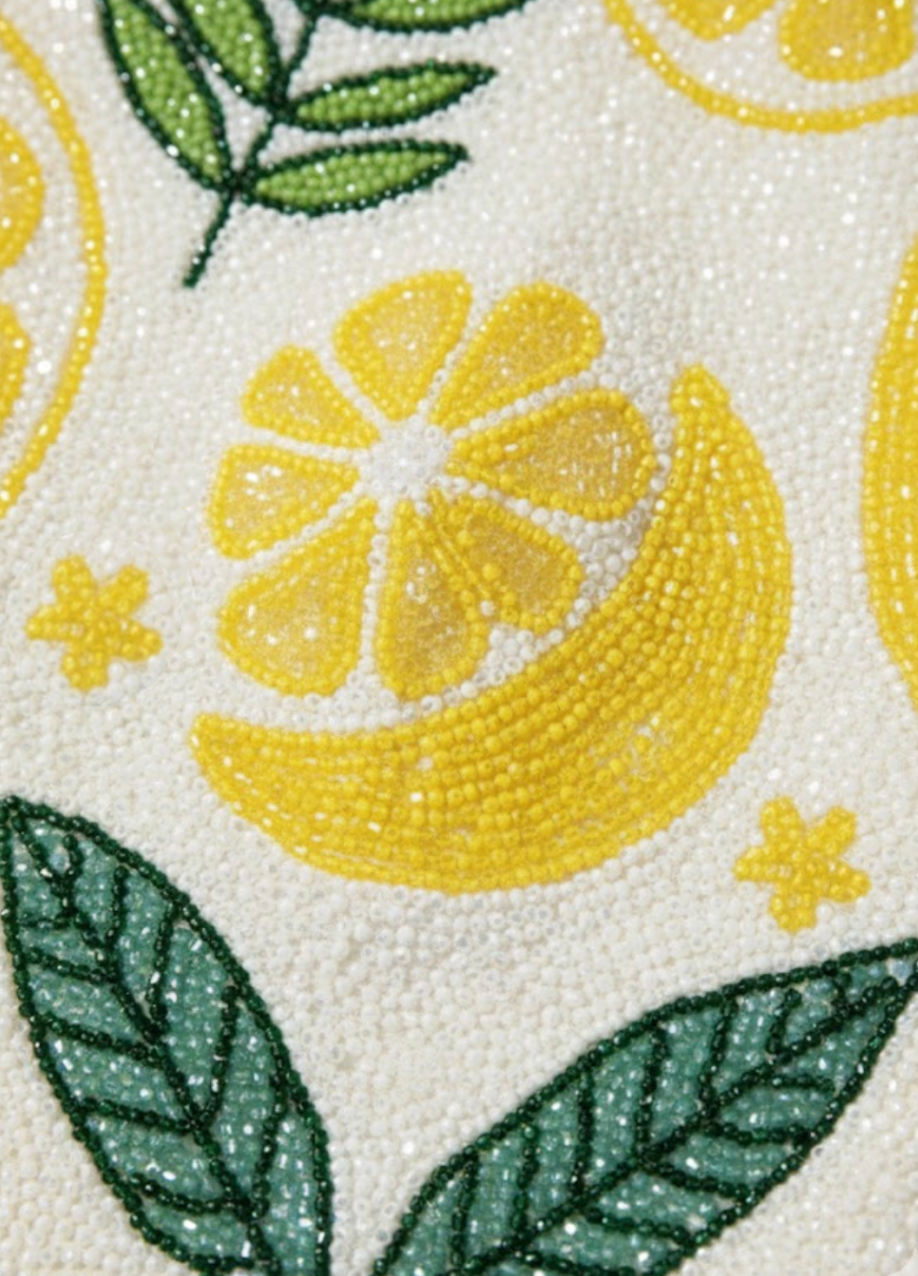 Complete your summer wardrobe with this lemon-print embellished mini skirt, designed to turn heads from beachfront dinners to luxury resort getaways. The skirt showcases vibrant yellow lemon slices and botanical motifs crafted from shimmering beadwork, creating a playful yet sophisticated aesthetic. Its flattering mid-rise cut and structured silhouette make it easy to style as a matching set or paired independently with bikinis, white tops, or lightweight knits.
