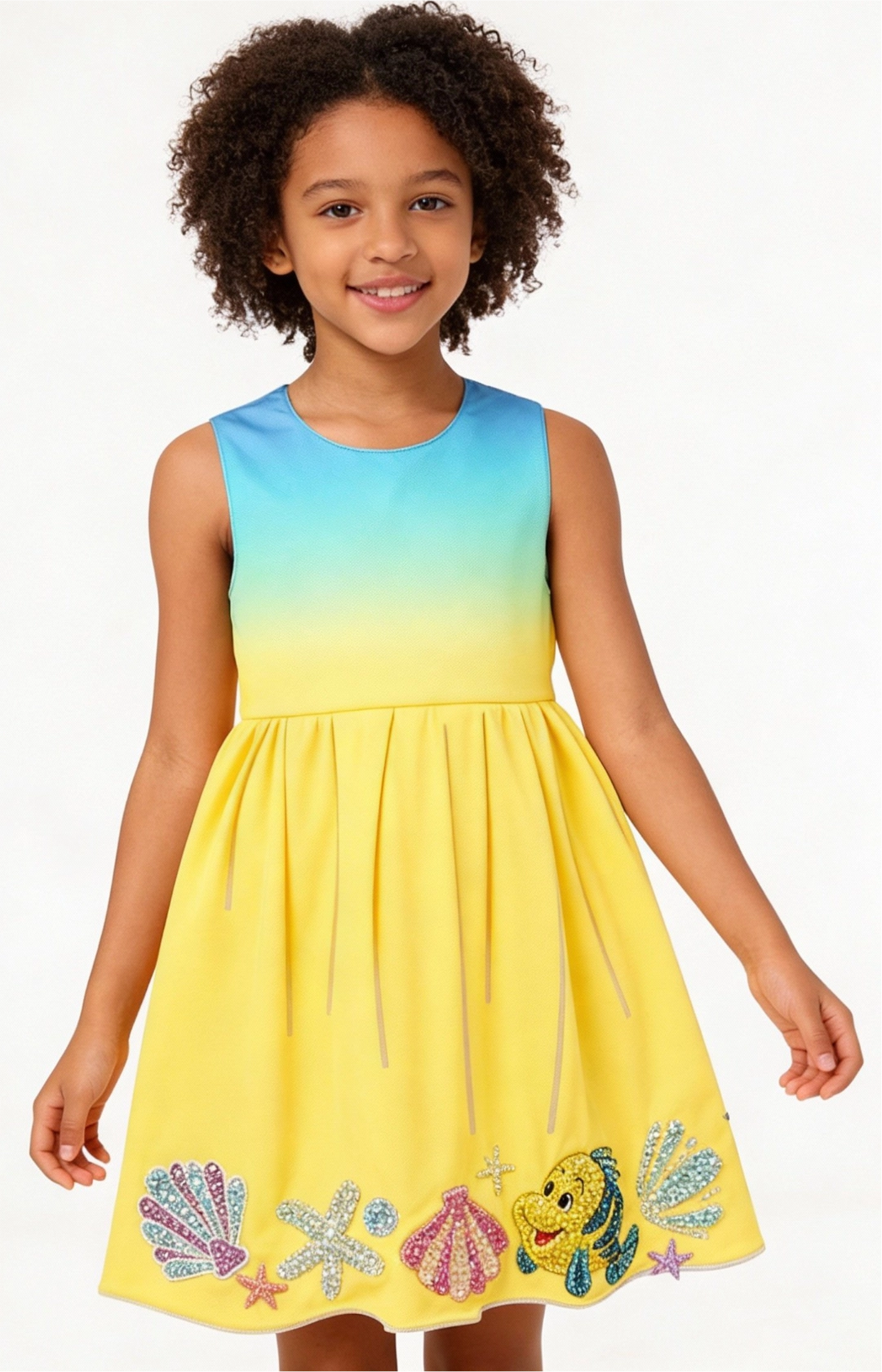 Experience the magic of twilight with Ariel's Sunset Glow Dress, an exquisite collaboration between Oceanus and Disney.