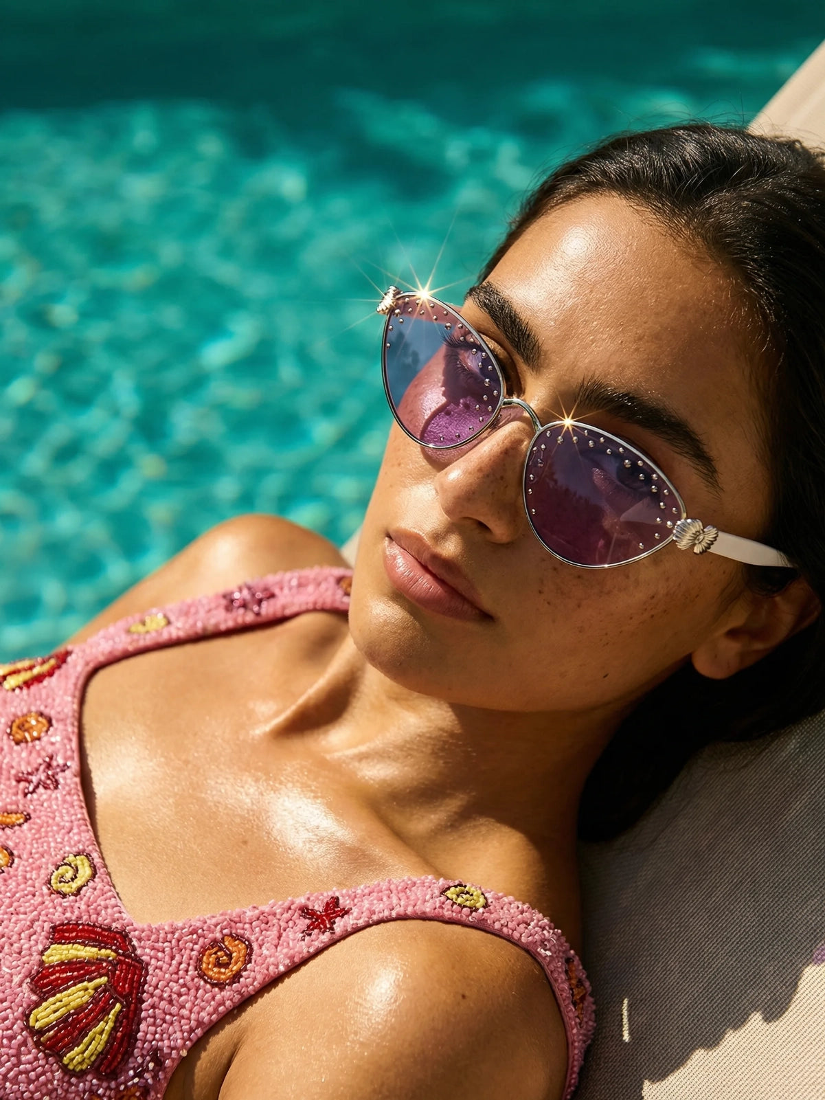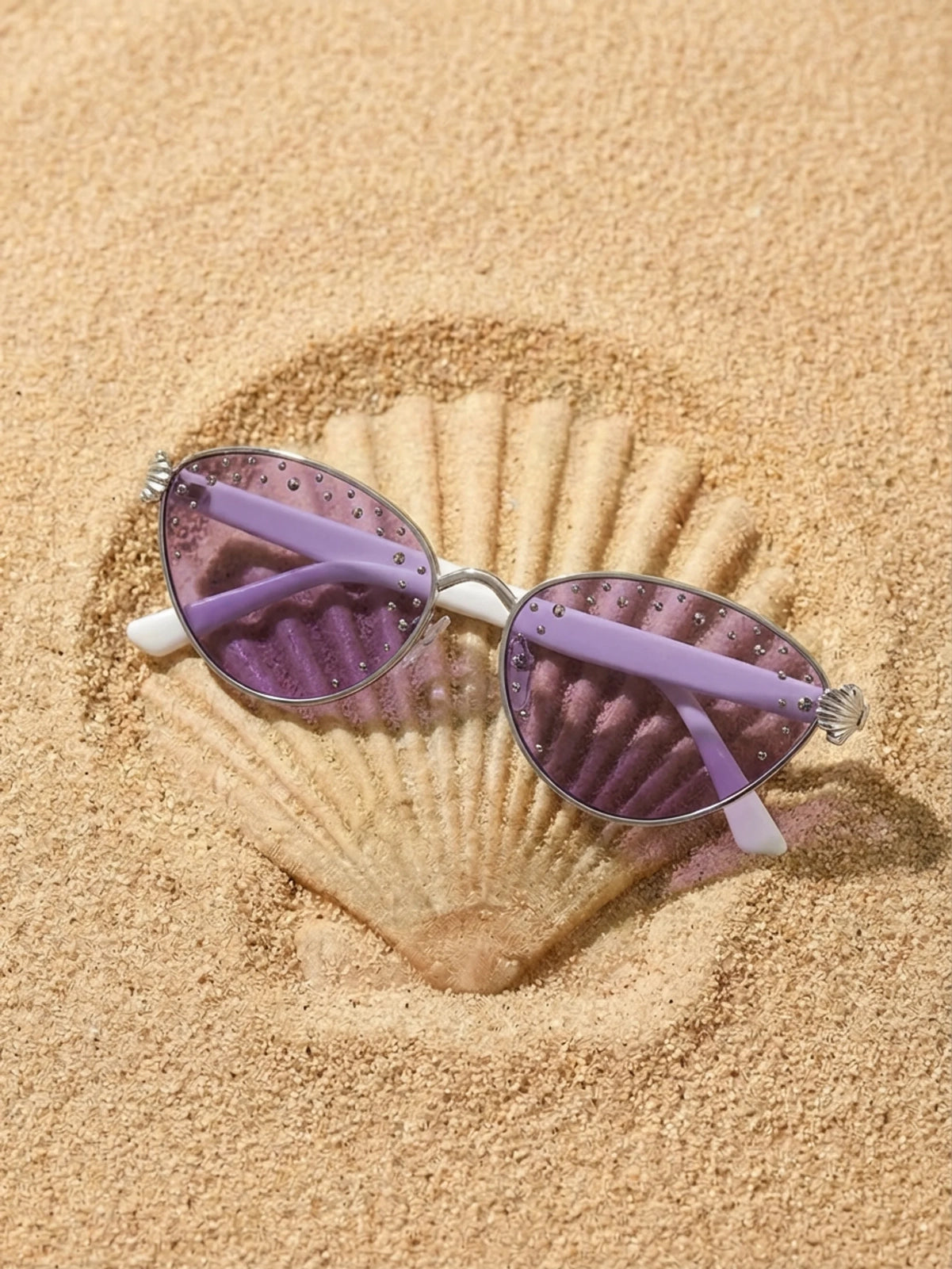 Channel mermaid vibes with the Oceanus x SOJOS Darling Sunglasses in Purple. Featuring lavender tinted lenses, hand-applied rhinestones, and shell-inspired temple accents, these statement sunglasses blend luxury craftsmanship with whimsical ocean energy. Designed with premium acetate temples, stainless steel details, and a 3D shell accent, they’re the perfect fashion sunglasses for summer, beach vacations, festivals, or everyday glamour.