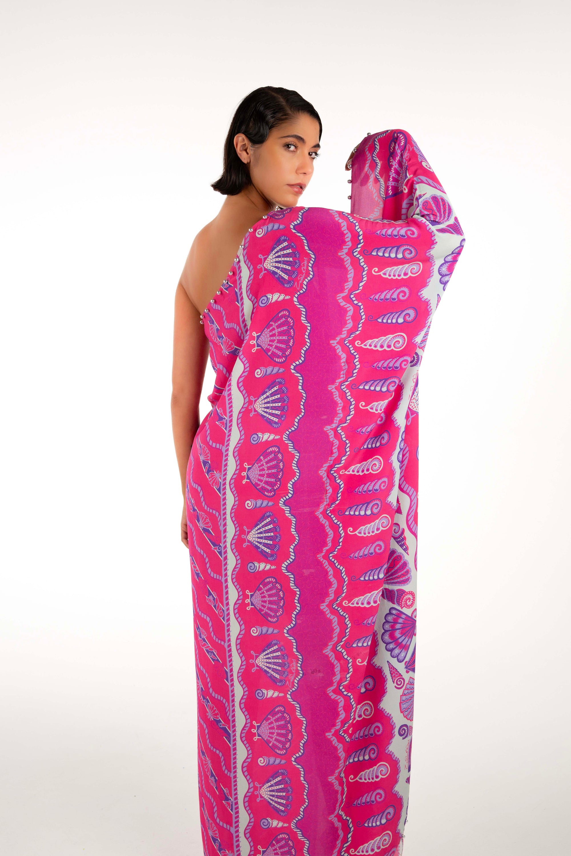 Beautiful silk kaftan with embroidered shell detail.