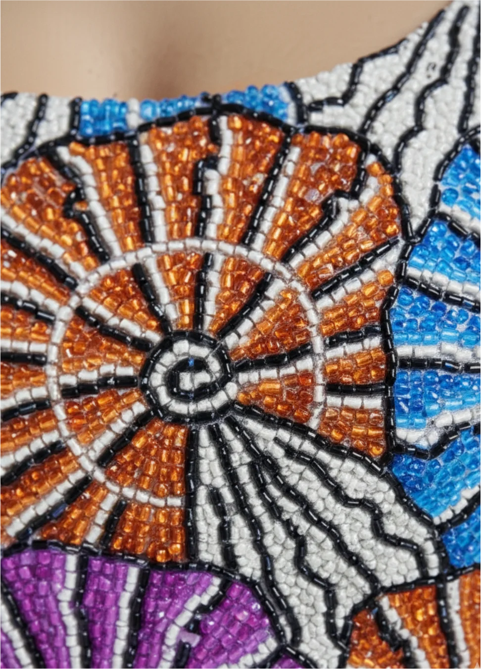The Swirlshell Beaded One Piece Swimsuit is a show-stopping collaboration between Oceanus and Zandra Rhodes. Crafted from luxe Lycra and adorned with hand-beaded swirls and shell motifs, this designer swimsuit offers a flattering scoop fit and high-fashion edge. Perfect for luxury resort wear, exclusive beachwear, and runway-ready swim fashion.