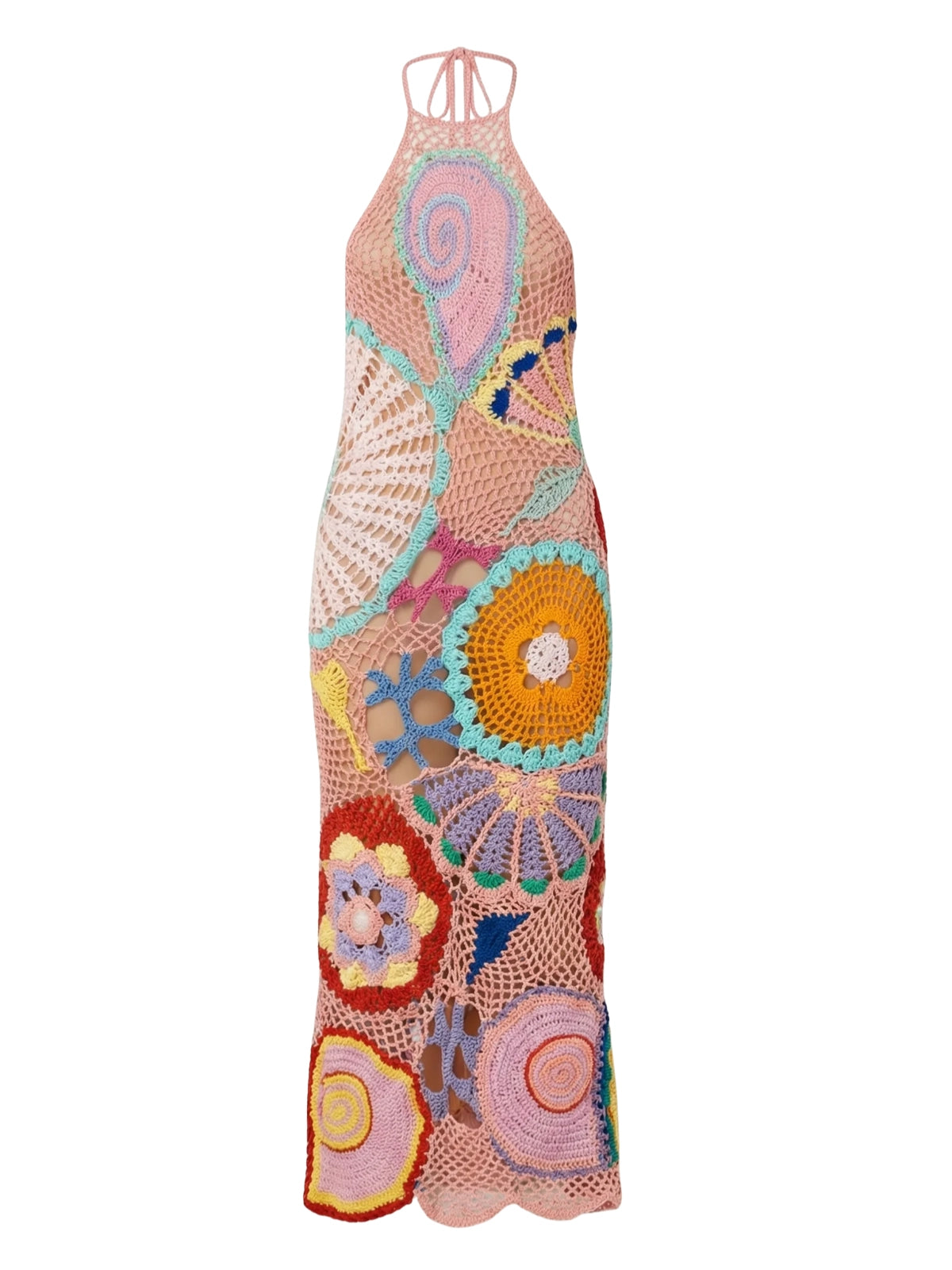 Radiate effortless style in the Kaia Crochet Maxi Dress, a lively coral-inspired multicolored crochet dress adorned with hand-crafted seashell and reef embellishments. Its flowing maxi length and vibrant design create a flattering silhouette, perfect for summer soirées, tropical beach getaways, and resort vacations. A must-have luxury crochet party dress for ocean lovers.