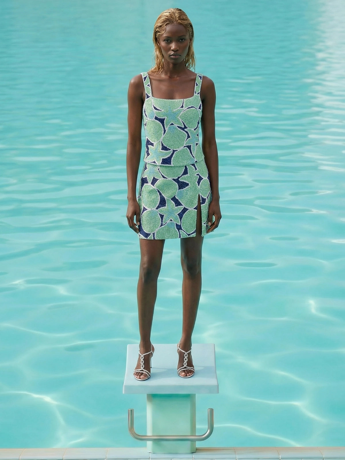 The Sea Moscow Co-ord Skirt brings architectural precision to luxury resort wear.