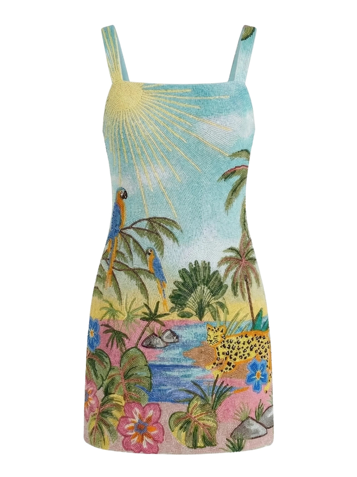 Sunshine Peacock Blue Beaded Mini Dress